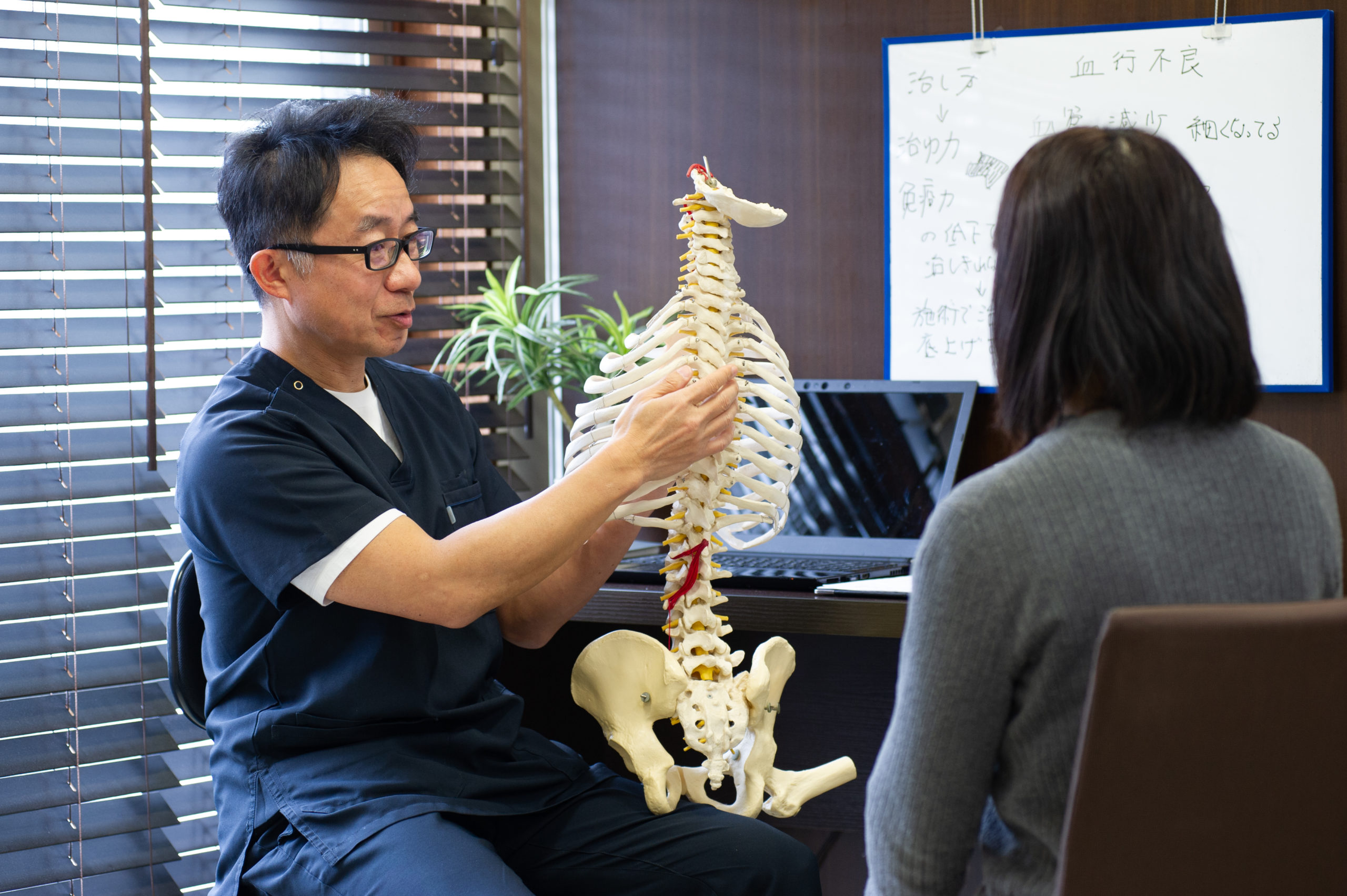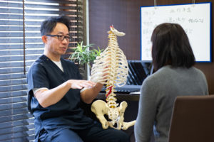 そのうえで次回から来院していただくペースについて、また日頃の生活での注意点や簡単な姿勢・運動指導をさせていただきます。